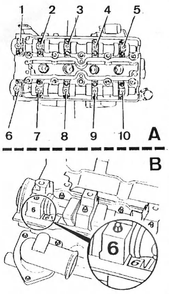 à cames d'admission) ou n6, 8 et 10 (arbre à cames d'admission) d'un demi-tour