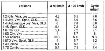 1.4Si sport. Gls: 173; 1.6I 16v gsi: 195 ; 1.5D city, viva: 150; 1.5D affaires: 1.5Td viva, sport, gls: 165; 1.4I combo: 143; 1.7D combo: 142.