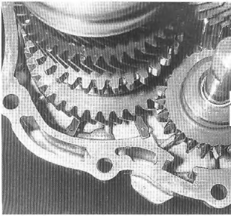 Nota : la gorge de la fourchette du pignon de marche arrière doit être orientee vers le haut.